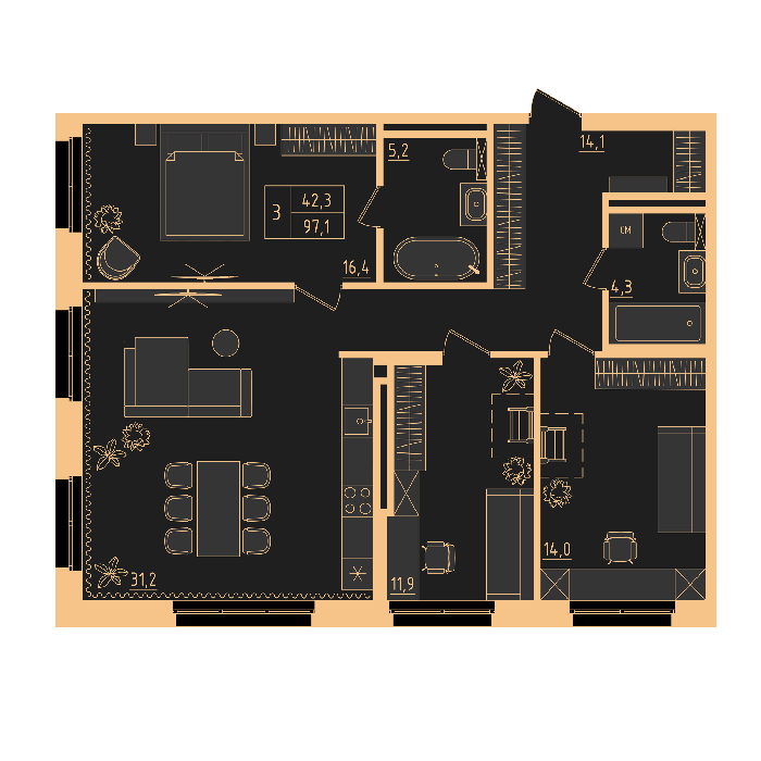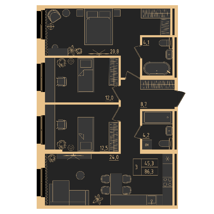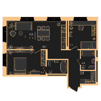 3 квартал 2026 3, 2, 1 комнаты от 29.1 до 100.5 м2 от 7,2 до 24,2 млн. руб