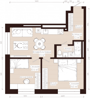Акция 2 квартал 2026 3, 2, 1 комнаты от 24.91 до 93.86 м2 от 7,5 до 20,3 млн. руб